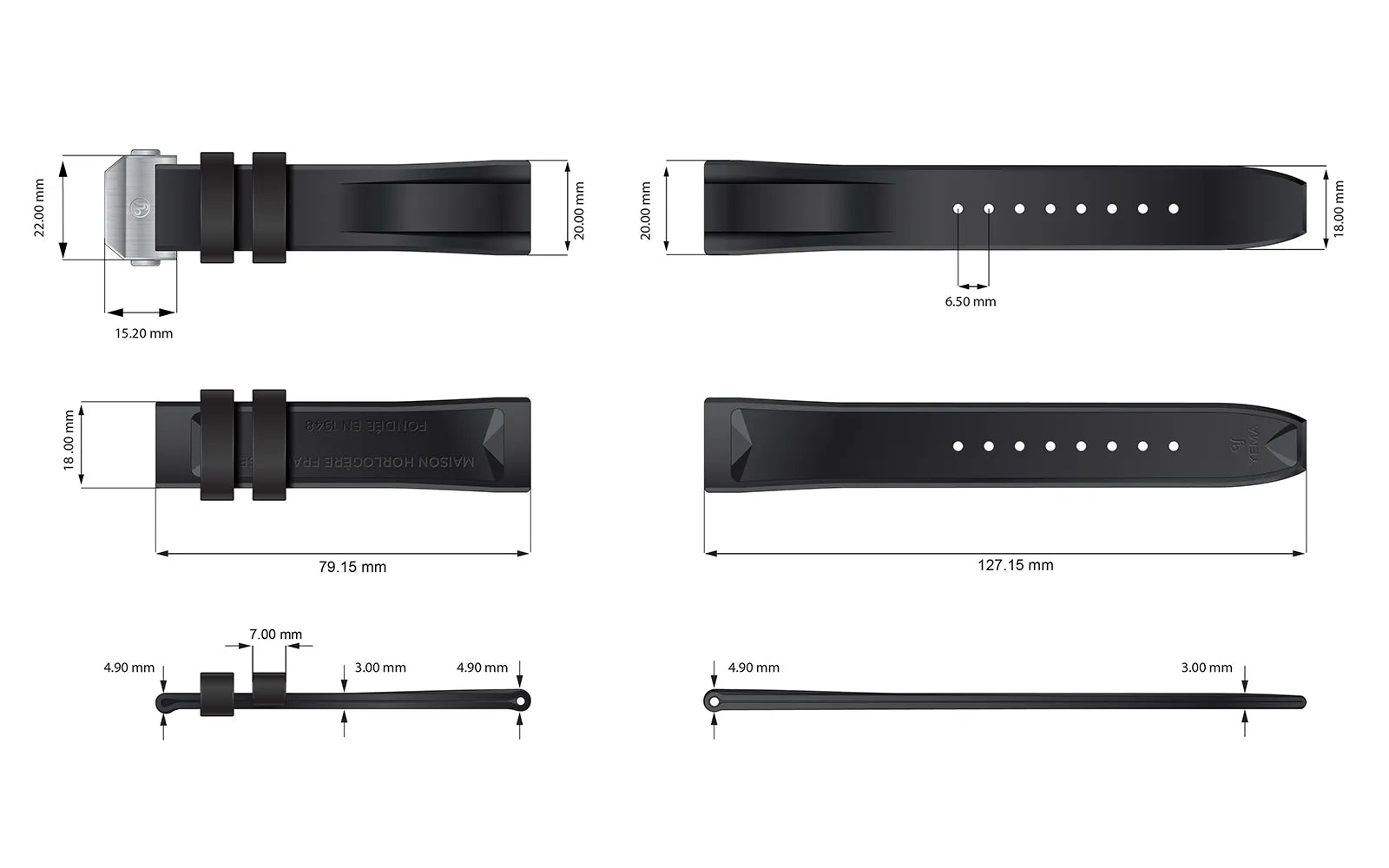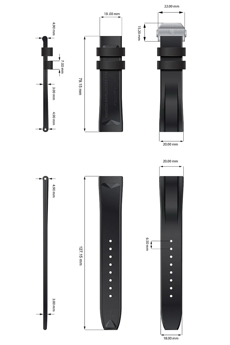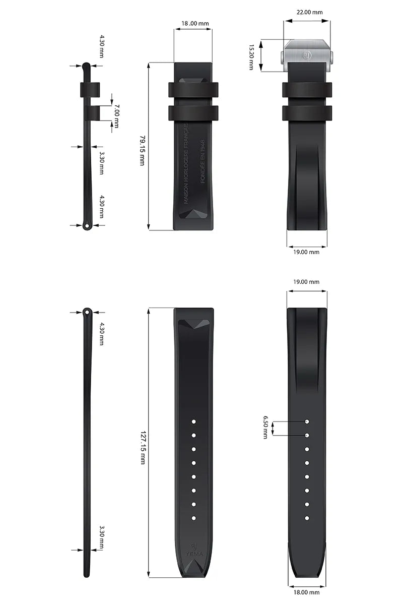 デプロイメントバックルを装備したイエマFKMバイトン®ラバーストラップは、高級品質のラバーから作ら