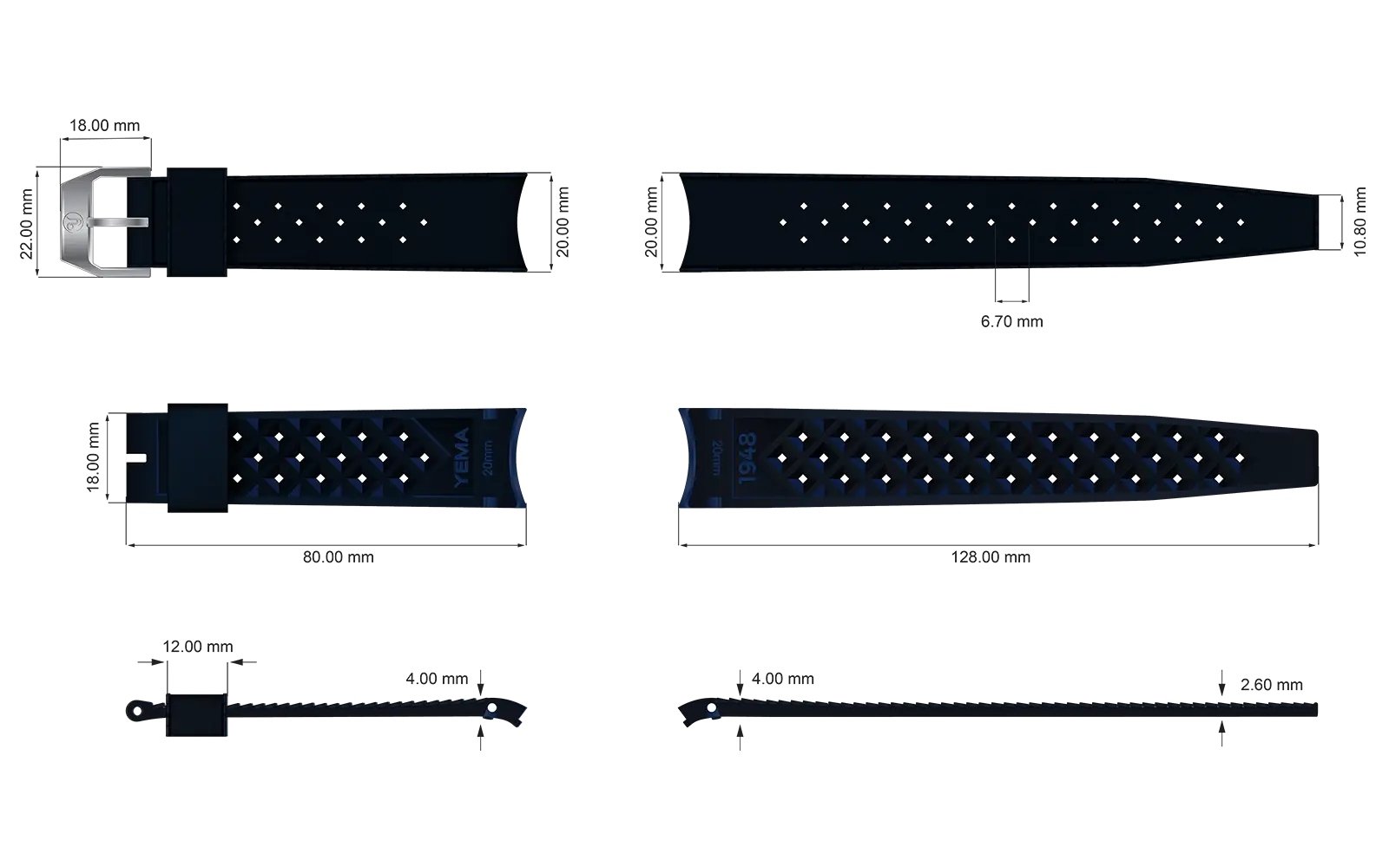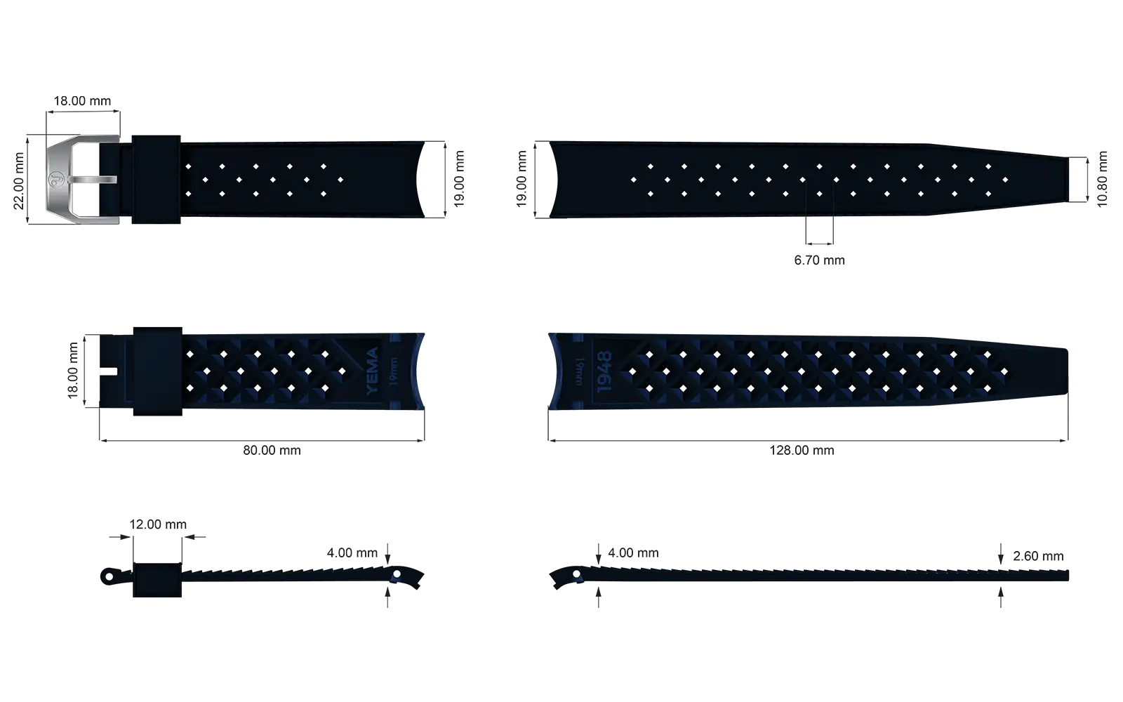好みは個人により異なるため、ラバーFKMストラップは2つの長さをご用意しました。