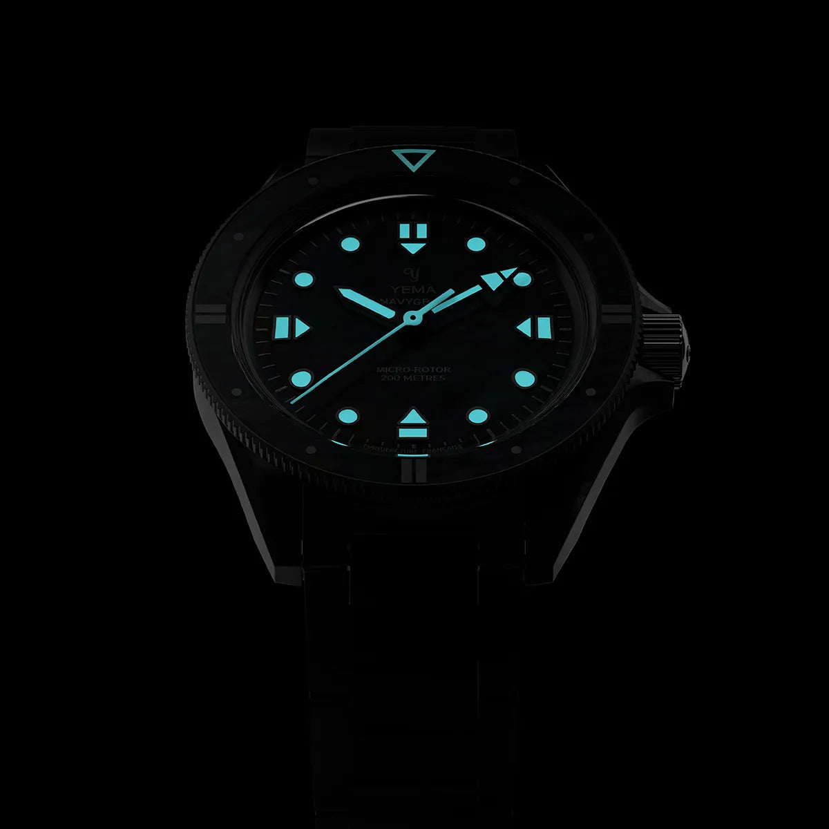 すべてのダイヤルマーカー、ベゼル、そして時針、分針には暗闇でも完璧な視認性を確保するためにグレードAのスーパールミノバが塗布されています。