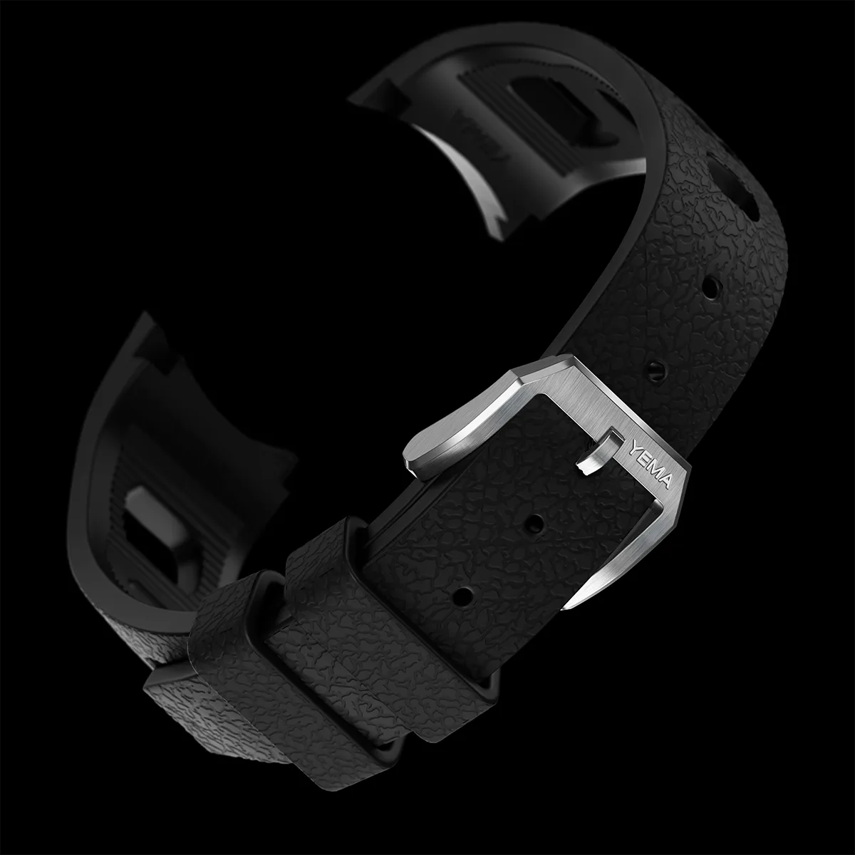 仕上げには、上品なヘアライン/ポリッシュ仕上げのイエマ・スチールバックルを採用。デザイン性と機能性を兼ね備えた、インテグレーテッドストラップです。