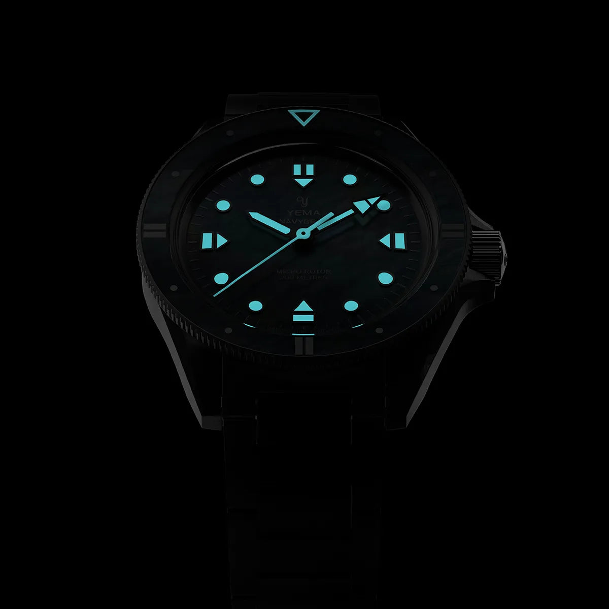 すべてのダイヤルマーカー、ベゼル、そして時針、分針には暗闇でも完璧な視認性を確保するためにグレードAのスーパールミノバが塗布されています。