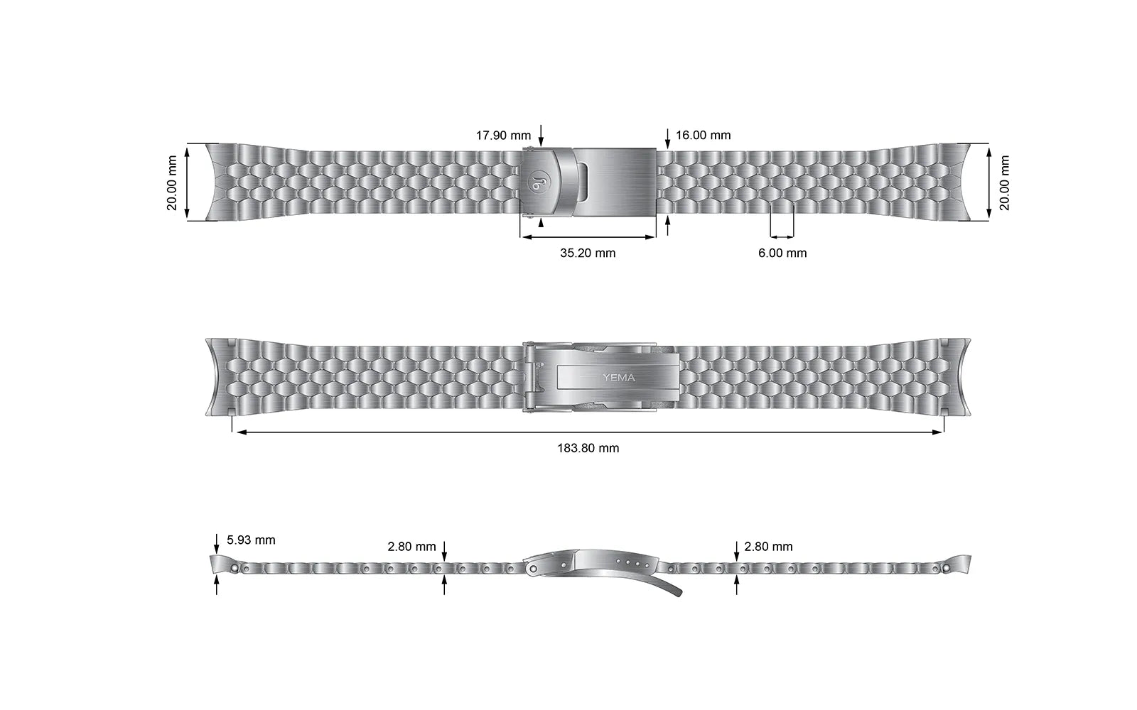 316L ステンレススチール製フォールディングクラスプは、ブラッシュ仕上げでスタイルと快適さを追加します。YEMAのロゴが上部にエンボス加工され、バックル下部にはMAISON HORLOGÈRE FRANÇAISE DEPUIS 1948の文字が刻印されています。ブレスレットには延長部分が付いているので、ダイビングスーツの上からでも簡単かつ迅速に調整できます。