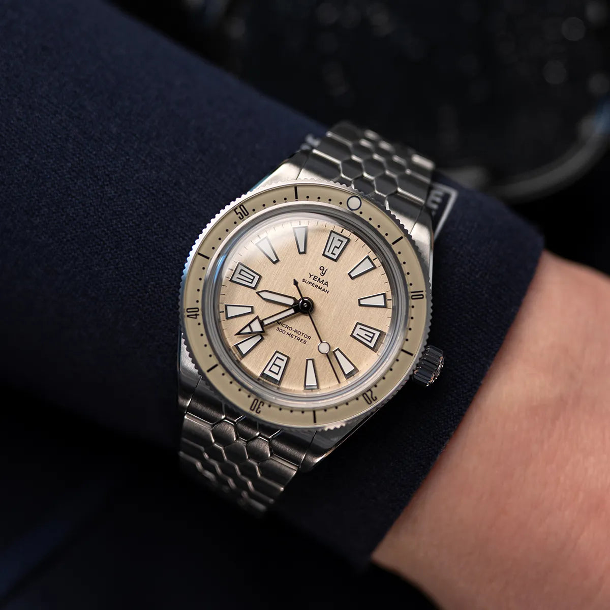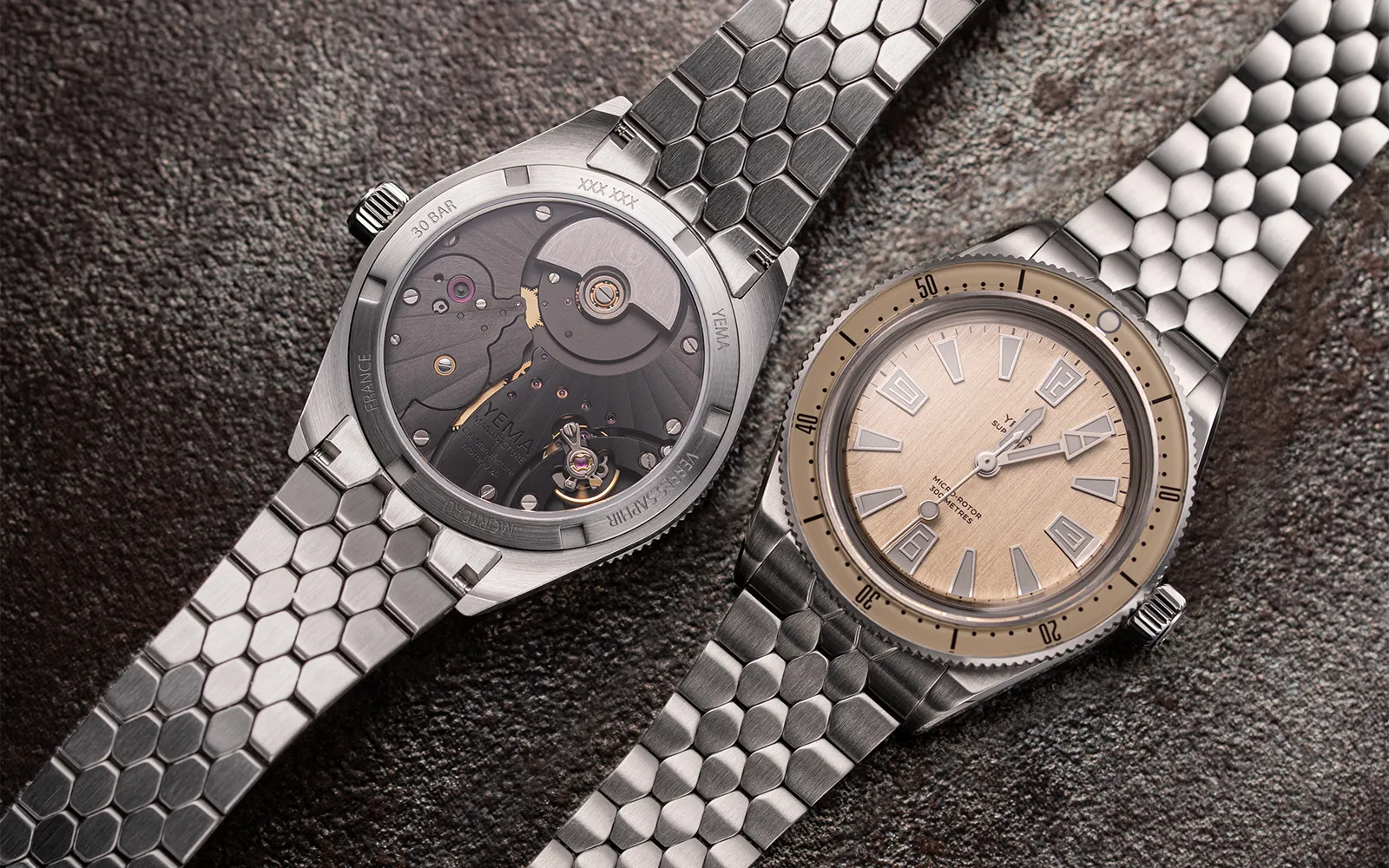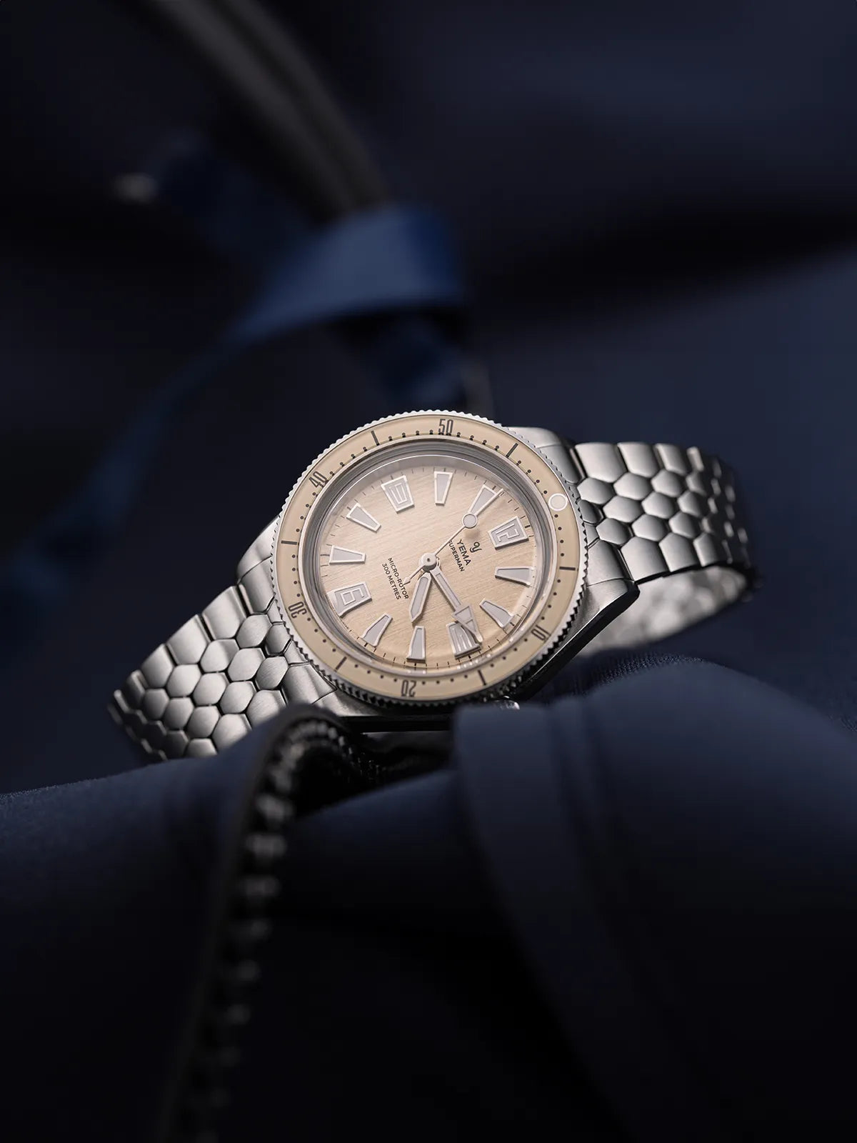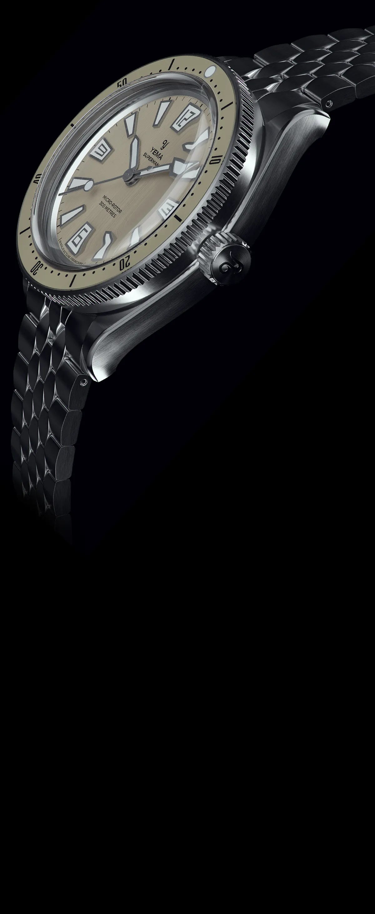 YEMA の象徴的な 1960 年代のスキン ダイバーズを現代的に解釈したこのアイテムは、手首に着けたときに見た目も感触も素晴らしく、ヴィンテージの雰囲気と独特のレトロな雰囲気を醸し出しています。スケールスリムブレスレットを装備したスキンダイバーCMM20は驚くほど快適な着け心地で、水中だけでなく日常のシーンでも違和感ないスタイリッシュさを備えています。