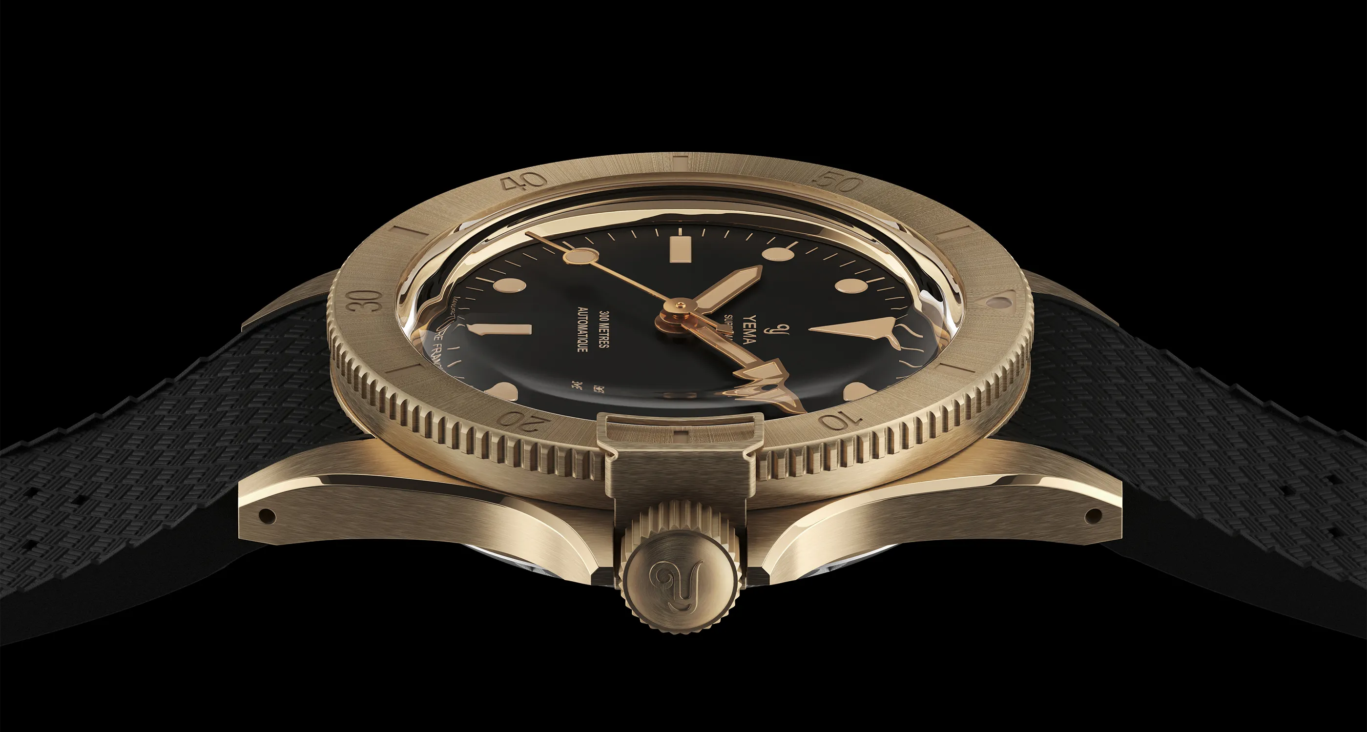 文字盤には、CMM.10 キャリバーのコンポーネント製造の内製化に伴う YEMA の新しい位置づけを反映して、フランス語の表記と 6 時位置の新しい MANUFACTURE FRANÇAISE シグネチャーが誇らしげに表示されています。