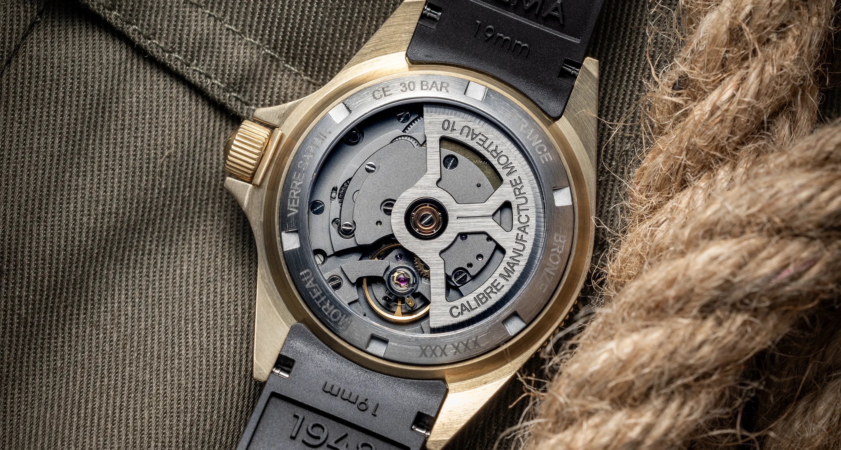 プロのダイバーのために設計されたスーパーマン ブロンズ CMM.10は、私たちのマニュファクチュール CMM.10キャリバーを搭載し、ブラシ仕上げとポリッシュ仕上げで際立っています。独特のネオヴィンテージルックを保ちながら、クロノメトリック精度、70時間のパワーリザーブ、そして磁場や衝撃に対する優れた耐性を提供します。