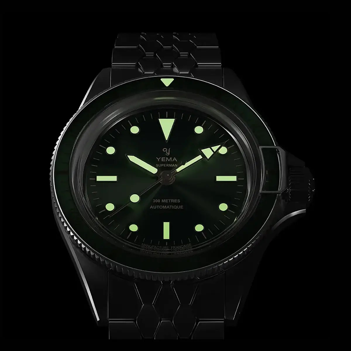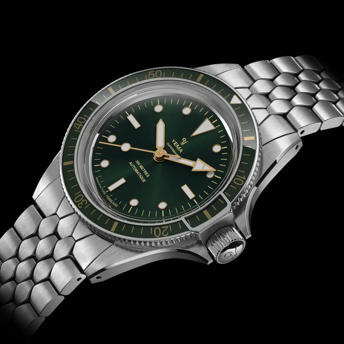 長年にわたりイエマのアイコンであるスーパーマンモデルは最も有名なフランス製ダイバーズウオッチの一つとして名を馳せてきました。特許取得済みである3時位置のイエマ独自のベゼルロック機構はプロフェッショナルのダイバーにとって非常に有用であることが証明されており、1963年以来全てのスーパーマンモデルに搭載されています。