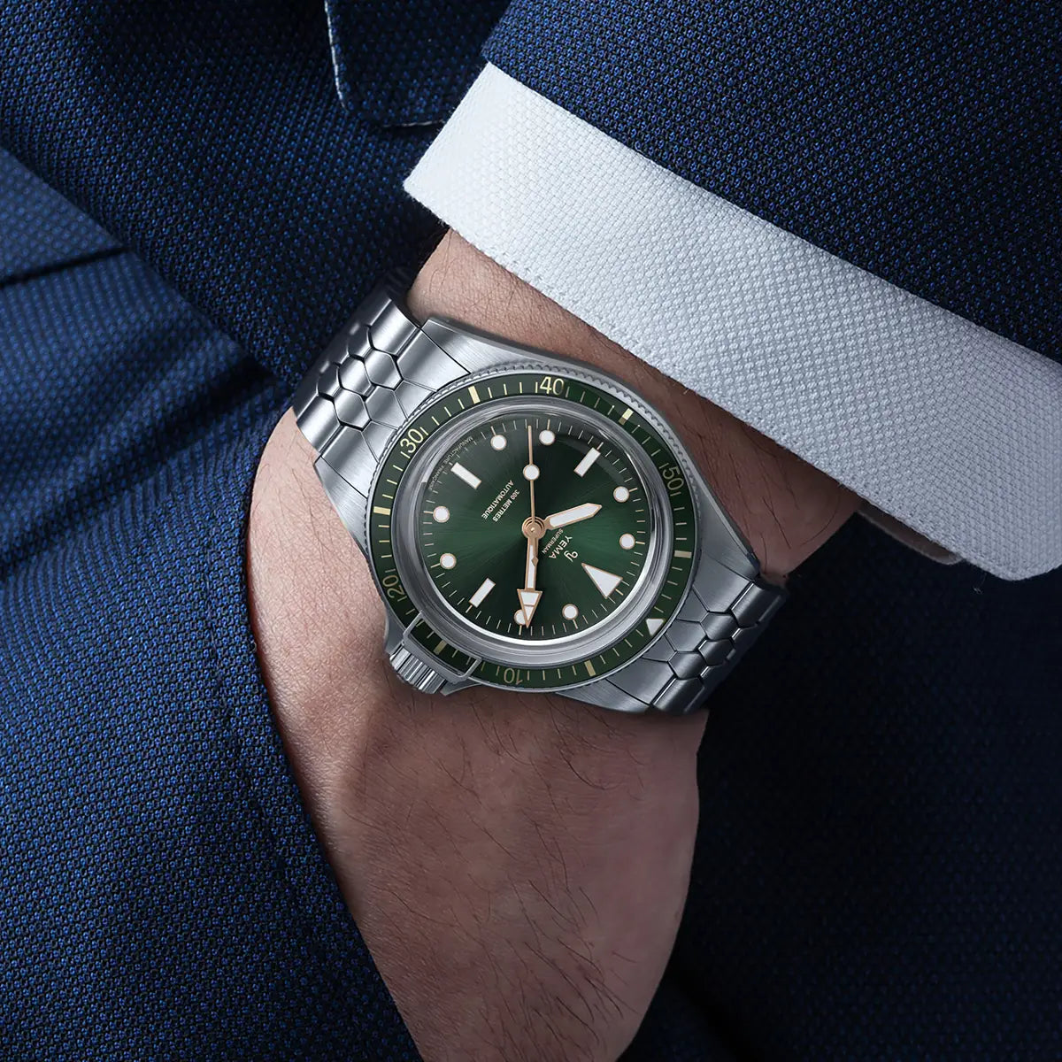 ユニークなネオヴィンテージルックでありながら、現代の機械式ダイバーズウオッチの利点と機能を余すことなく装備しています。