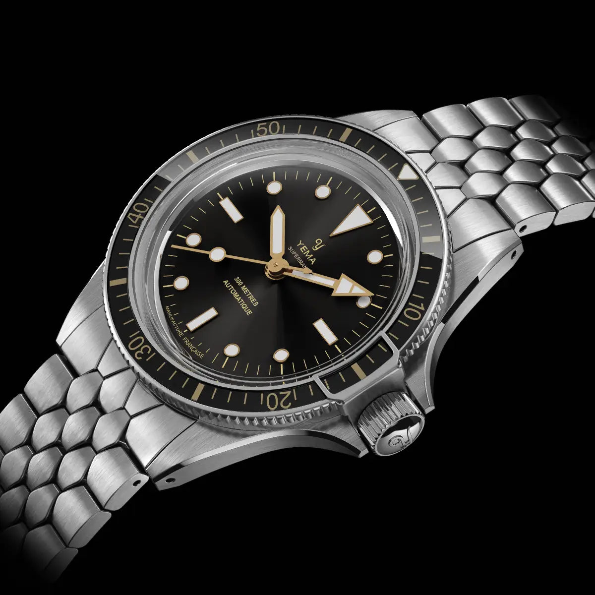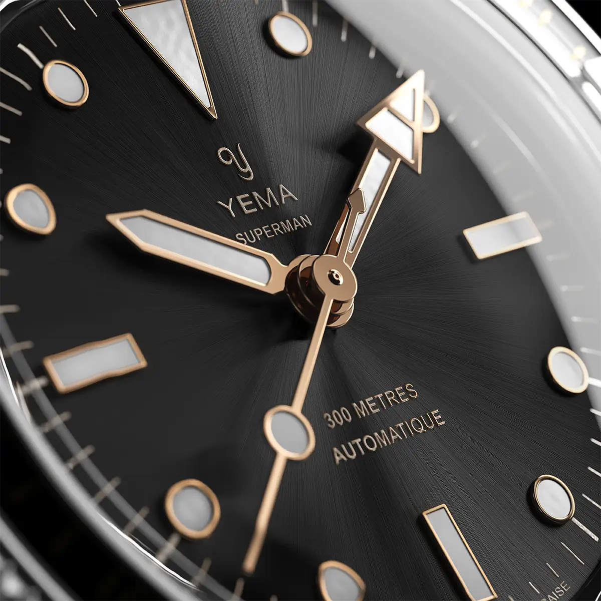 長年にわたりイエマのアイコンであるスーパーマンモデルは最も有名なフランス製ダイバーズウオッチの一つとして名を馳せてきました。特許取得済みである3時位置のイエマ独自のベゼルロック機構はプロフェッショナルのダイバーにとって非常に有用であることが証明されており、1963年以来全てのスーパーマンモデルに搭載されています。