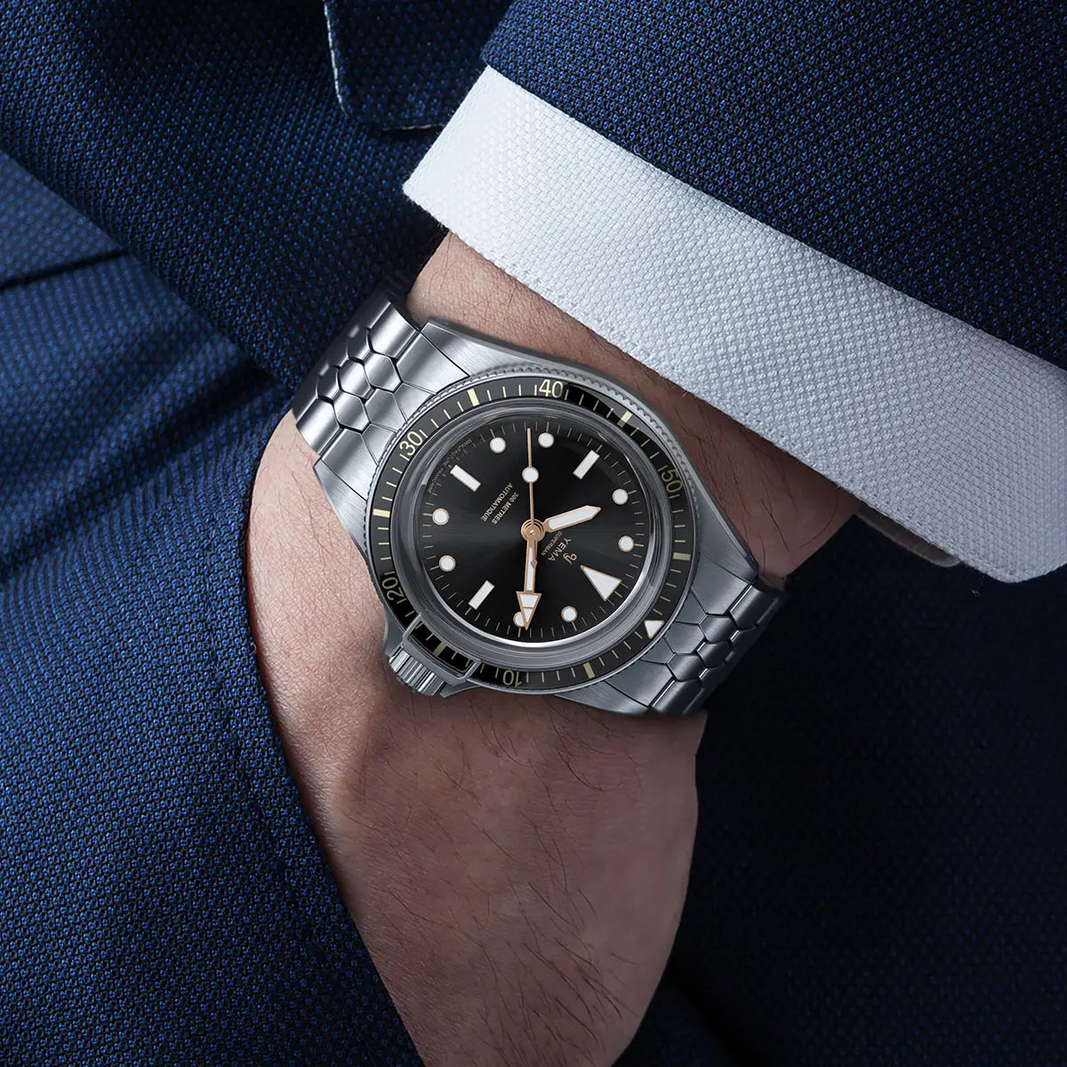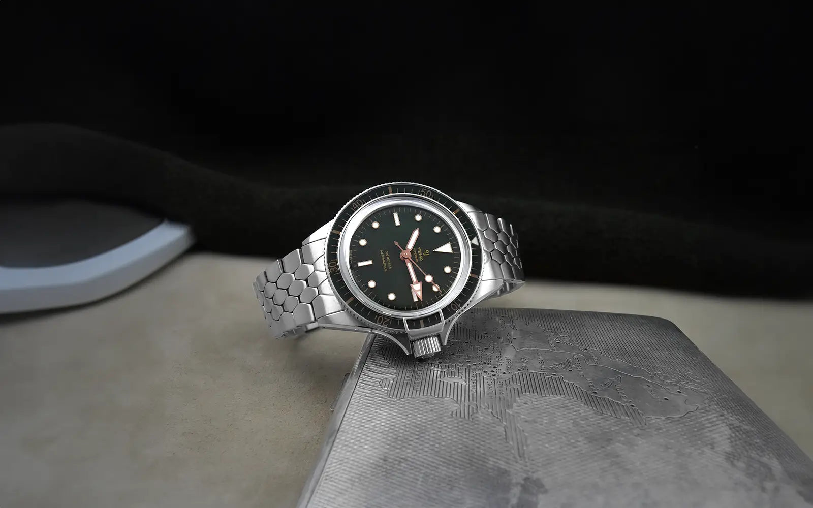 ユニークなネオヴィンテージルックでありながら、現代の機械式ダイバーズウオッチの利点と機能を余すことなく装備しています。