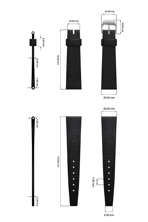 ラグからストラップの先端にかけて先細りするデザインです。テーパードストラップは少しの技巧を加える