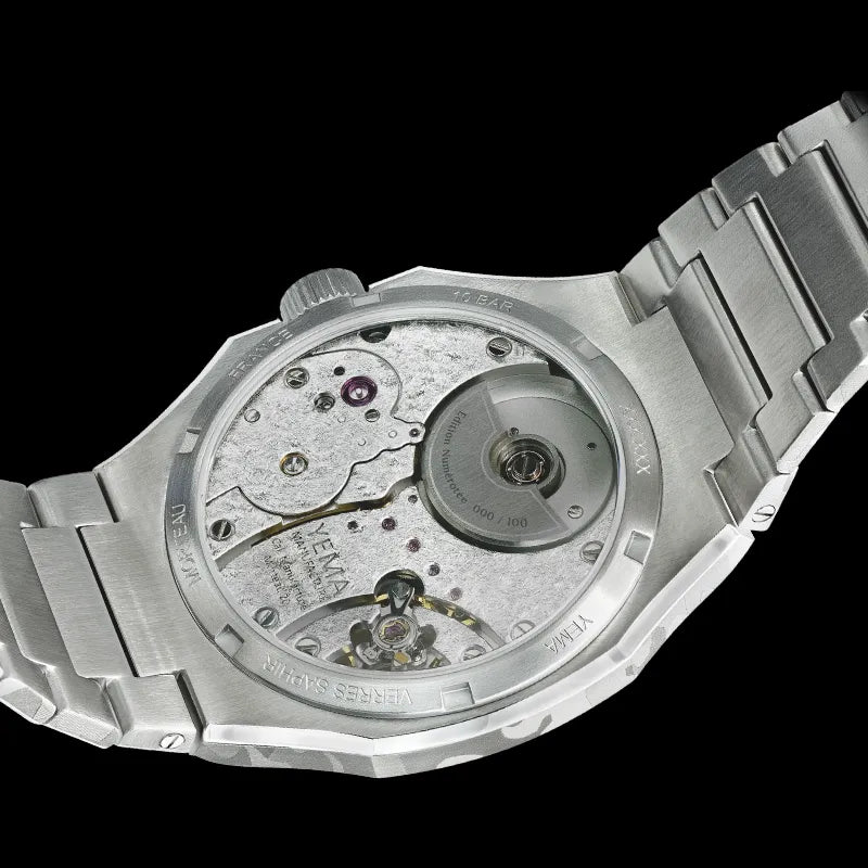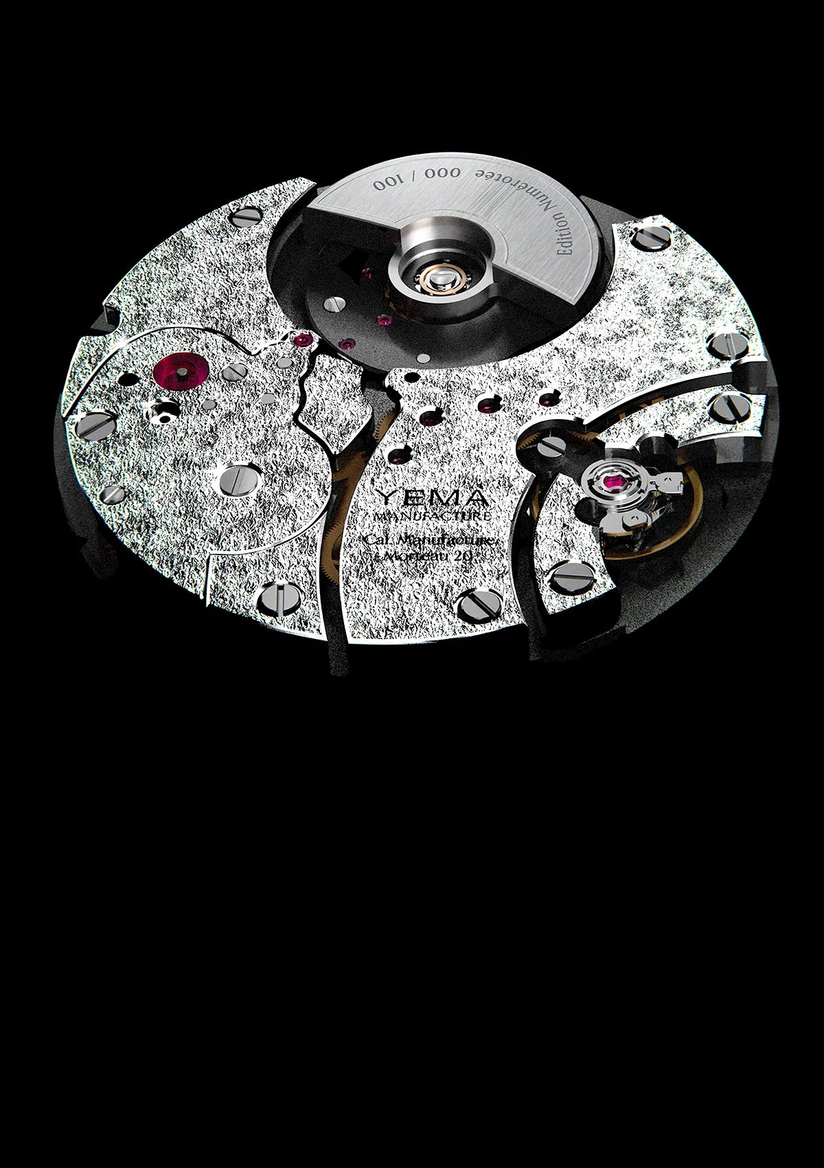 全てのマニュファクチュールムーヴメントコンポーネントは高級時計製造の源であるモルトーから半径72km以内に位置するフランスとスイスで製造されています。キャリバーブリッジとメインプレートは、全てのコンポーネントの最終組み立てが行われるモルトーにあるイエマのワークショップで製造されています。
