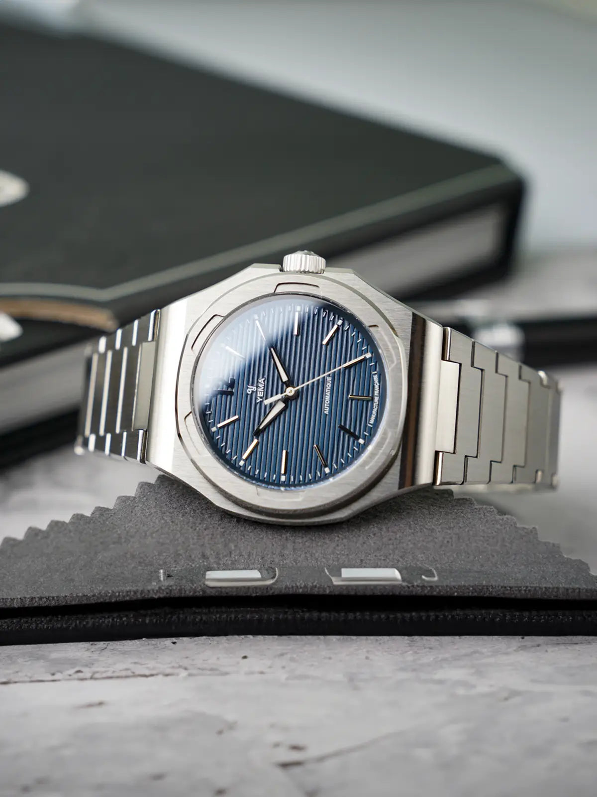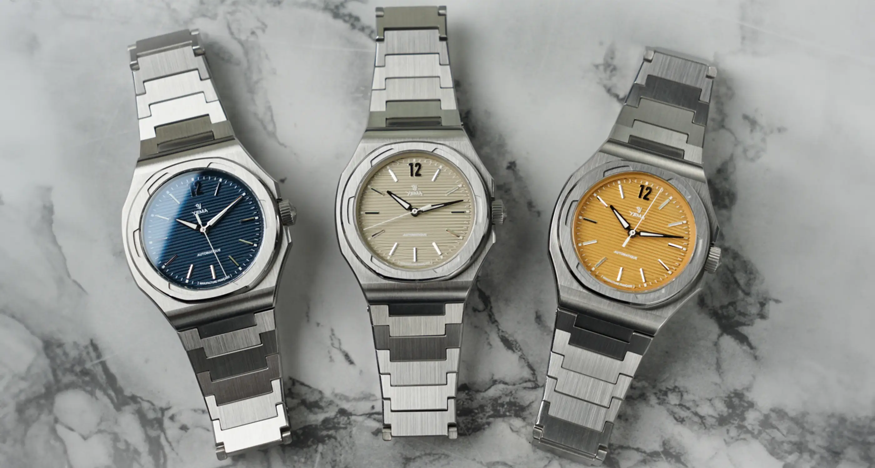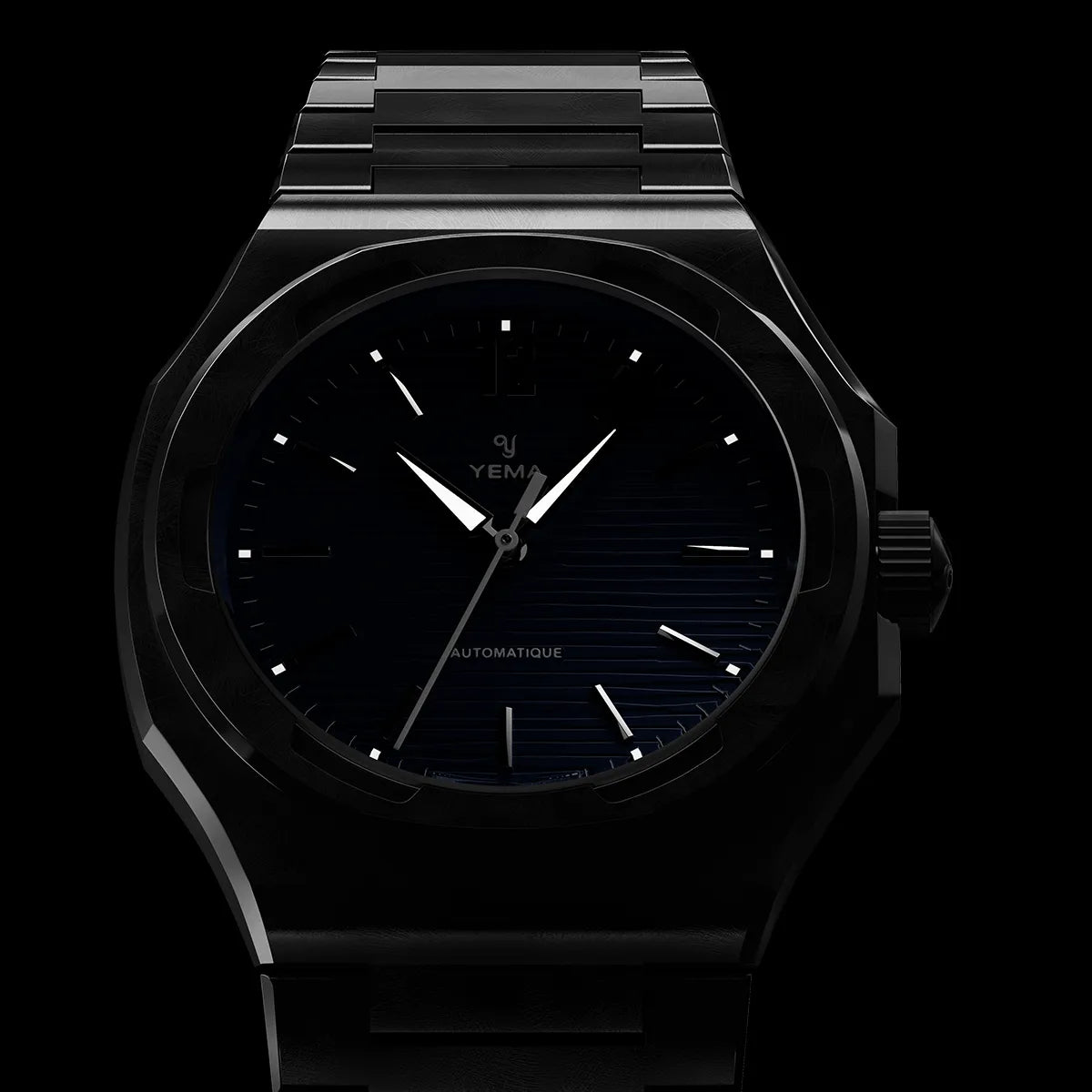 イエマのアイコニックなブレスレット一体型モデルが自社製マイクロローターキャリバーを搭載し、サイズがスリムダウンして再登場しました。エキジビションケースバックやファセット針にマッチした立体アワーマーカーに飾られたストライプ柄のダイヤルなど、こだわりにあふれた装飾が満載です。このエレガントなスポーツウオッチは日常使いに最適な現代性と快適性を提供します。