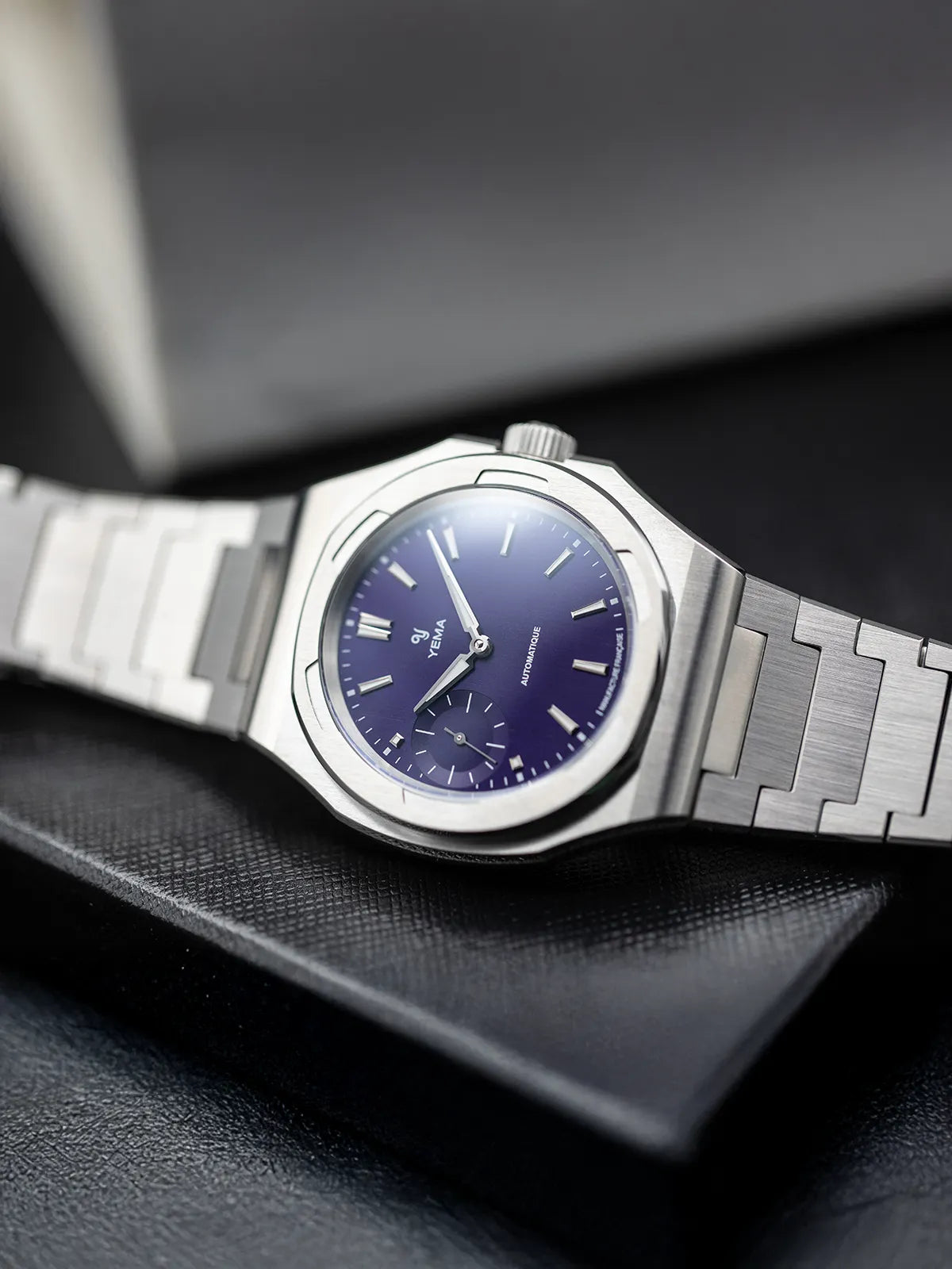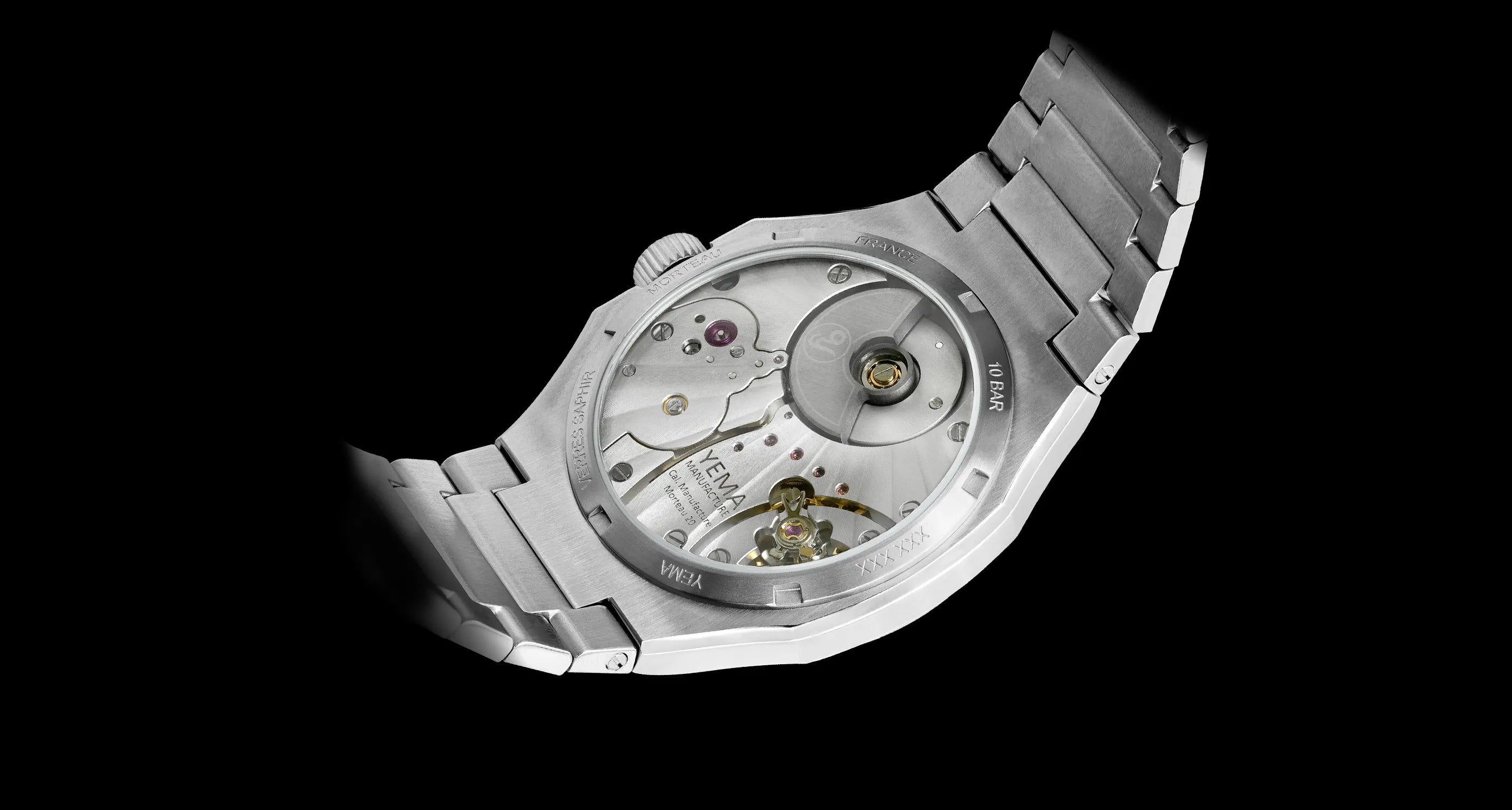 YEMAの統合ブレスレットアイコンが洗練された新たな表現で復活。超薄型のWristmasterケースとマニュファクチュールCMM.29マイクロローターを組み合わせ、独自の装飾がシースルーケースバック越しに鑑賞可能です。さらにスモールセコンドを備えた新デザインの文字盤を採用。クリーンで建築的なラインは、精緻な仕上げと腕への自然なフィット感と融合し、日常使いに適したエレガントなスポーツウォッチに仕上がっています。モダンな快適性と時計製造の本質が完璧に調和した逸品です。