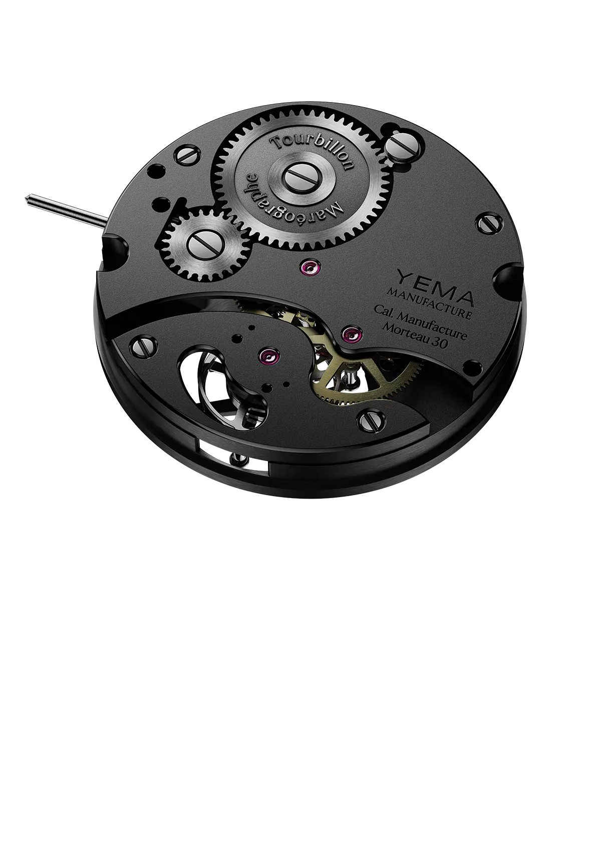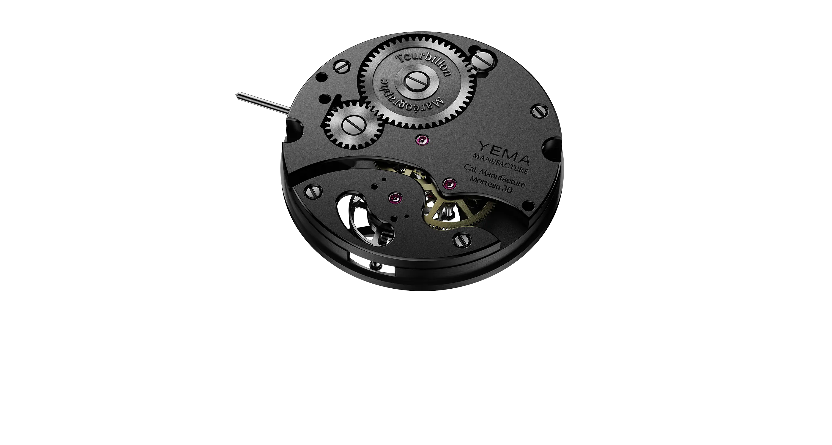 オリヴィエ・モリーにより設計および開発されたキャリバー。組み立て、調整および検査を含めて、マイクロ コンポーネント (ブリッジとメインプレート) はモルトーにある YEMA ワークショップで直接製造されています。