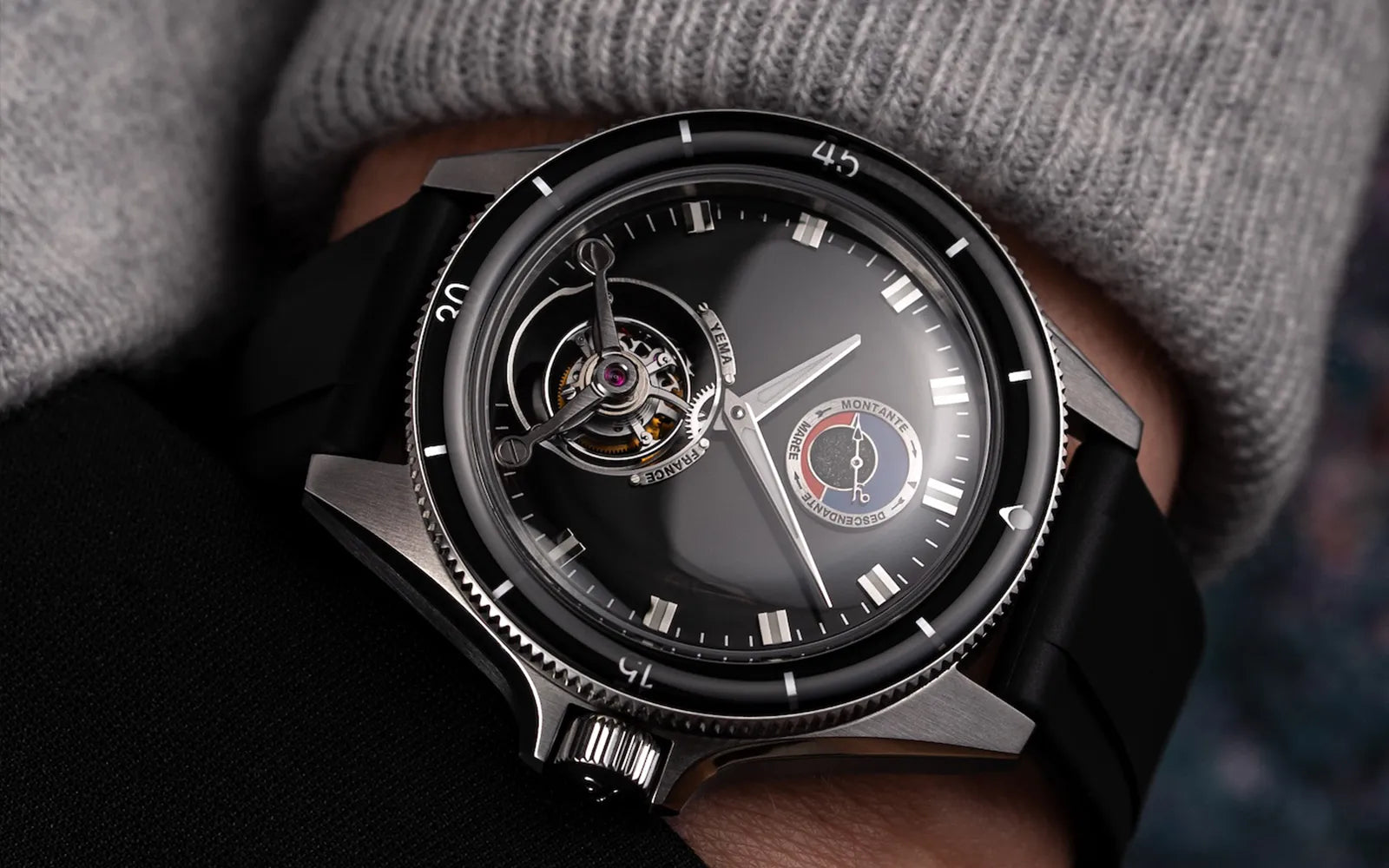 "通常トゥールビヨンウオッチは取り扱いに最新の注意を要するため、実用的というよりも芸術作品としてデザインされることがほとんどで、これらの機能性が付属していることは稀です。これは日常使い用にデザインされた最も希少なトゥールビヨンの一つであり、美しさと洗練さの中にも堅牢性と機能性を合わせ持つイエマに引き継がれている伝統を体現するラグジュアリーなタイムピースです。"